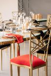 HALFMOON-SHAPED table set in GOLD with white GLASS top