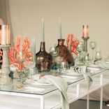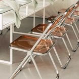 White rectangular CORNELL table with white plastic shelve and clear glass top