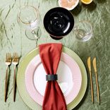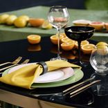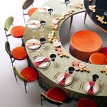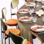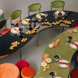 Black mix TEMPO chair with PUMPKIN #320 seat and GREEN back #352