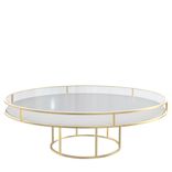 Gold rectangular CORNELL KIDS table with white plastic shelve and clear glass top