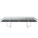 White round CORNELL KIDS table with black plastic shelve and clear glass top