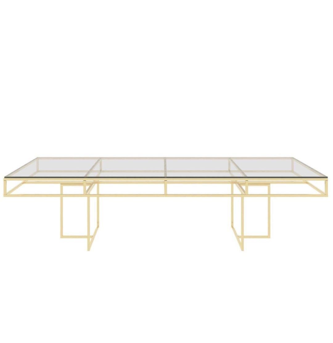 Gold rectangular CORNELL KIDS table with clear glasstop