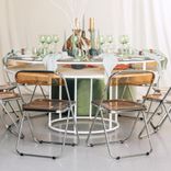 White round CORNELL table with white plastic shelve and clear glass top