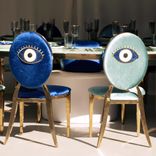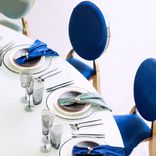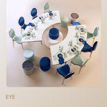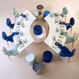 HALFMOON-SHAPED table set in GOLD with white GLASS top