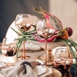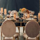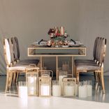Gold rectangular CORNELL table with black plastic shelve and clear glass top