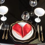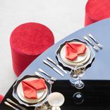 HALFMOON-SHAPED table set in SILVER with black GLASS top