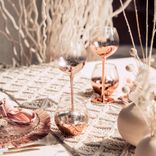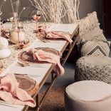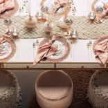 Gold rectangular CORNELL KIDS table with white plastic shelve and clear glass top
