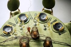 SHINY VELVET ROUND tablecloth ILER in ice green #315