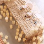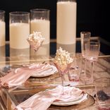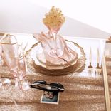 Gold rectangular CORNELL KIDS table with white plastic shelve and clear glass top